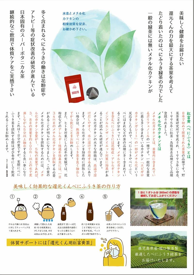 ※ こちらの商品ページは還元くんのお茶【べにふうき茶】を取り扱っています。